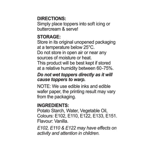 Each topper is printed with high-quality edible ink on premium icing sheets, giving you vibrant, easy-to-use designs that are completely safe to eat.