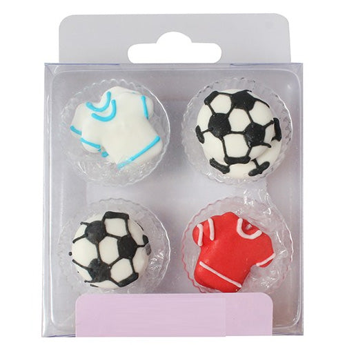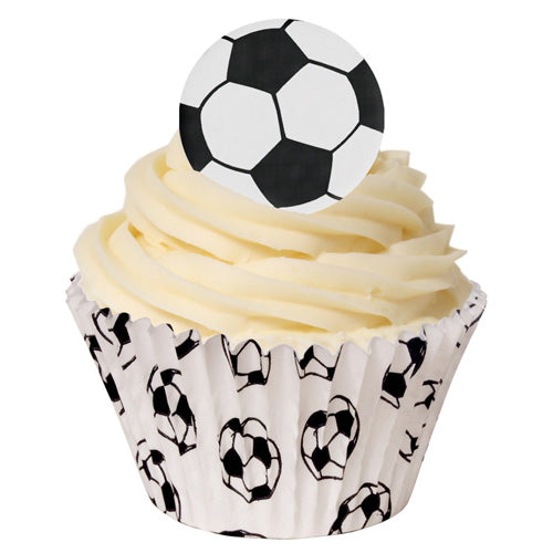 From figurines of players in action to detailed soccer ball cupcake toppers and edible images of boots, nets and team colours — you’ll find it all here. Go for a classic black-and-white design or build a full stadium scene with our soccer cake accessories.