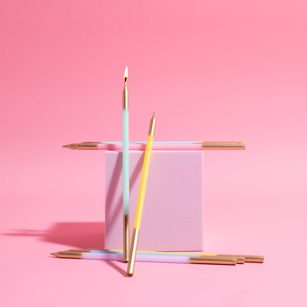 15cm GOLD DOUBLE DIPPED Cake Candles - PASTEL MIX (Pack of 12)