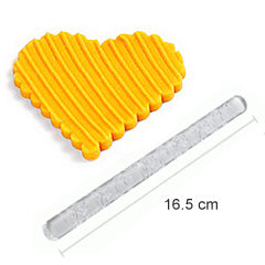 This small acrylic textured rolling pins with line textures is great for embossing line patterns onto a small area. Made out of high quality clear acrylic enabling easy placement and alignment. Rolling pin measures approximately 16.5cm x 1.3cm. Line pattern area measures approximately 13.5cm.