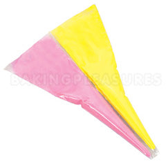 These two colour decorating bag inserts (striper bags) by Ateco allows you to pipe two different colour icings through one tube. To use simply insert a decoratng tube into an Ateco reusable or disposable decorating bag. Fill half of the striper bag insert with one colour and the other half with a different colour. Place striper bag into Ateco bag with the tip already inserted and decorate. Made out of polyethylene. Made in USA. Each pack contains ten 18 inch striper bags.