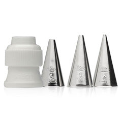 This Ateco Writing Tip Set contains Ateco's 3 most popular writing decorating tips (2, 4, 6) and a plastic coupler.