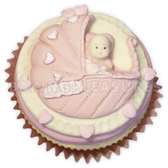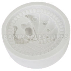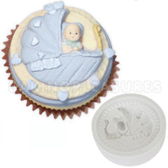 This Baby Pram Cupcake Mould by Katy Sue Designs highly detailed 3D cute baby in a pram. This will give a very special look to decorating cup cakes and can also be used as decorative plaques on larger cakes, perfect for christenings or baby showers. This mould is made in the UK and are made with FDA compliant food grade silicone. Can be used for sugar paste, flower paste, modelling paste, marzipan, chocolate, candy, boiled sugar, cold porcelain, salt dough, air drying clays and embossing powder.