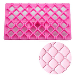 Roll out medium onto a flat surface and press the daisy diamond embosser gently onto the medium. You can also emboss directly onto cake surface.
