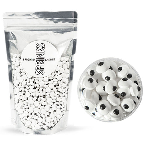 These bulk edible sugar eyes by Sprinks are a quick and easy way to bring your characters to life. Each edible eye measures approximately 10mm. Great for bringing your cakes, cake pops and other treats to live. Edible eyeballs are also great for Halloween theme treats. Comes in a 500g sealed bag.