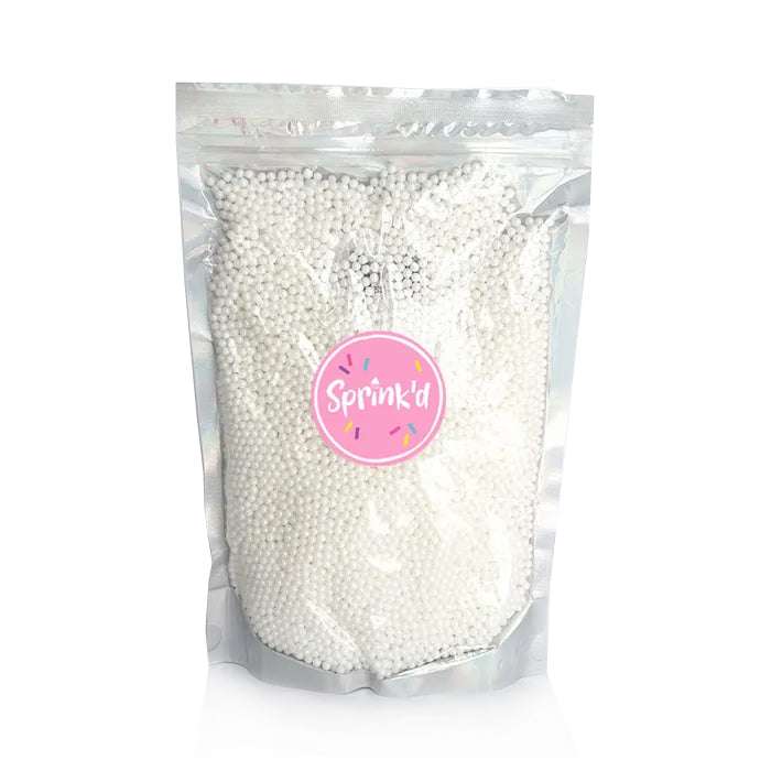 This BULK Sprinkd 4mm Sugar Pearl White Sprinkles 500g features white sprinkle pearls great for decorating your cakes, cupcakes and desserts. Comes in a bulk 500g self seal bag. Halal, kosher and gluten free.