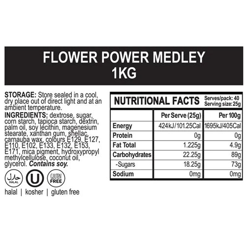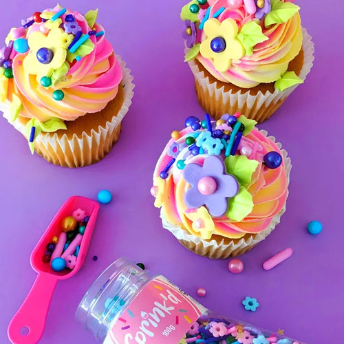 This bulk Flower Power Sprinkles Mix by Sprinkd features an assortment of pearls, jimmies, & flower sprinkles. Packaged in a bulk 1kg seal bag which offers great value.