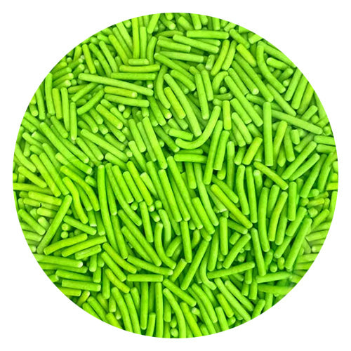 These BULK lime jimmies by Sprinkd are thin lime cylinder shape sprinkles great for decorating cakes, cupcakes and desserts. Packaged in a bulk 1kg seal bag which offers great value.Ā
