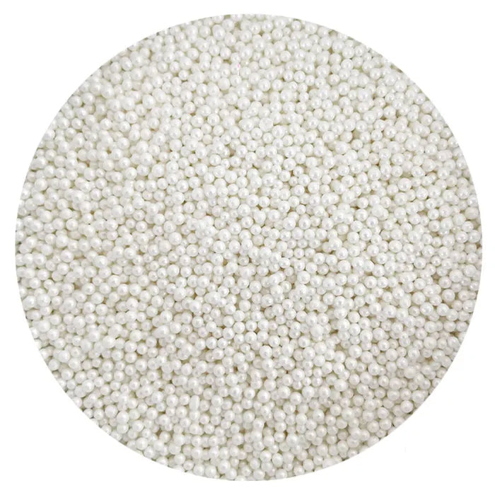 These bulk pearl white nonpareils by Sprinkd are small white sugar ball sprinkles great for decorating your cakes, cupcakes and desserts. Each sugar ball measures approximately 2mm in size. Packaged in a bulk 500g seal bag which offers great value.Ā