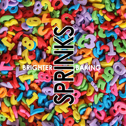 This Bulk Mixed Numbers Sprinkle Mix by Sprinks includes a mix of numbers in an assortment of rainbow colours. Great for decorating cakes, cupcakes and desserts. Comes in a 450g zip lock bag. Also available in 55g jars.