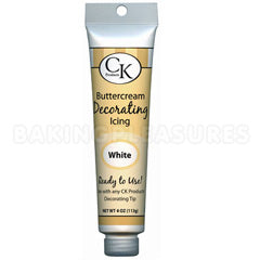 This White Buttercream Icing in 4 ounce tubes is an easy and convenient way to decorate using buttercream. The opening cap doubles as a coupler ring which fits standard decorating tubes. To decorate simply remove the cap and screw in your decorating tube. When finished remove decorating tube and replace it with the plastic cap for storage. Has a shelf life of 12 months if kept in a cool environemnt. Made in the USA by CK Products.