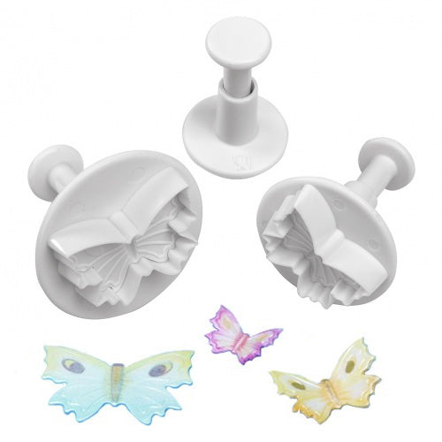 This small butterfly sugarcraft plunger set allows you to easily create beautiful & detailed butterfly shaped decorations in 3 different sizes, large (30mm), medium (25mm) and small (20mm). To use, simply cut out the shape and press the plunger to imprint the embossing. Works great with gum paste & flower moulding paste.