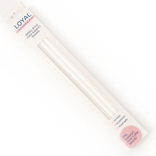 Create tall cakes with confidence knowing your cake will remain sturdy, with this food grade LOYAL Cake Dowels! Providing the support your cake needs. Simply cut the heavy duty dowels to your required size. Each dowel measure approximately 8 x 300mm. Available in small and large sizes. Comes in a pack of 10 pieces