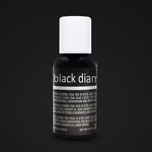 This Chefmaster Liqua-Gel Black Diamond is a highly concentrated, vibrant food colouring that mix easily and provide consistent tones without altering the texturing of your product. Colours are intense, bright and vivid. Easy to mix and disperse instantly. Gels come in 0.7oz (20ml) squeeze bottle with twist-top lids, so you can add drops for easy-to-repeat colors every time. Use in whipped icing, buttercream, fondant, cookies, and more.