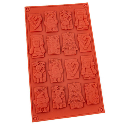 This Christmas Collection Silicone Mould is great for moulding christmas decorations out of chocolates, fondant, ice cubes, butter, fudge and more. This mould is made out of food grade silicone and are non stick, flexible, detailed, dishwasher, freezer, microwave and oven safe. Contains 16 cavities with 4 different designs