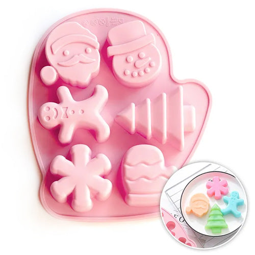 This Christmas mitten mould features 6 cavities allowing you to mould Christmas them shapes Santa, Snowman, Gingerbread Man, Christmas Tree, Snowflake and Mitten. Works with chocolates, fondant, ice cubes, butter, fudge and more. This mould is made out of food grade silicone and are non stick, flexible, detailed, dishwasher, freezer, microwave and oven safe. Mould measures 9cm x 7cm x 1cm.
