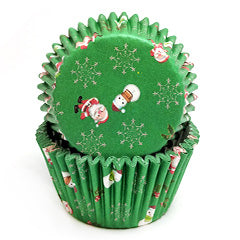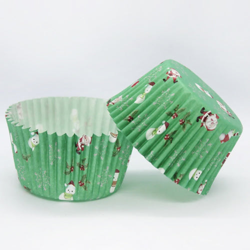 These Christmas Santa Snowman Green Baking Cups are standard size (#550) baking cups made out of high quality grease proof paper. Also known as cupcake liners, these baking cups measures approximately 50mm base & 35mm wall. Comes in a pack of approximately 240-250 pieces. Great for Christmas cupcakes, treats and desserts.