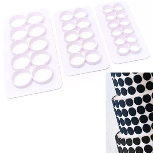 This multi circle cutter set includes 3 plastic cutters to allow you to quickly and easily cut out 10+ circle shapes. Allows you to easily create uniform geometric patterns on cakes, cupcakes and cookies. Made from food safe plastic.