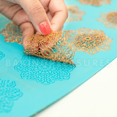 This Cake Lace Pearlized Gold Pre-Mix is a new innovative method by Claire Bowman for creating edible lace decorations for your cakes. It comes pre-mixed in a beautiful pearlized Gold colour great for making vintage lace pieces. It also stays flexible and moist for many months. The Cake Lace Pearlized Gold Pre-Mix is gluten free and suitable for vegetarians. Comes in a 200g container. Instructions included.