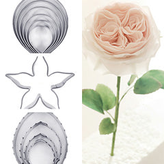 This complete rose flower cutter set includes 11 stainless steel cutters for cutting out rose petal, leaf & calyx shapes out of fondant, gum paste and more. This set includes: