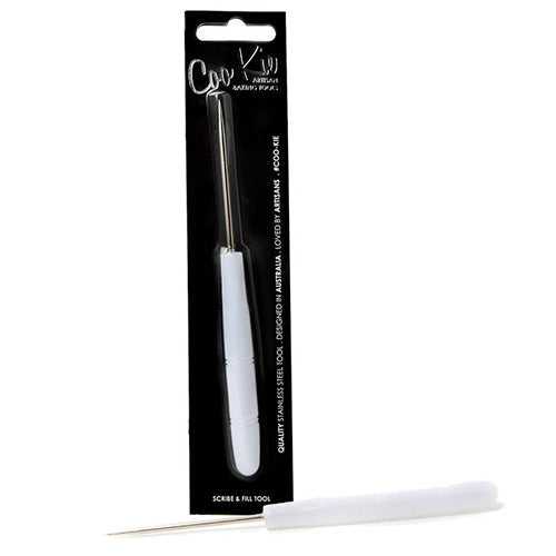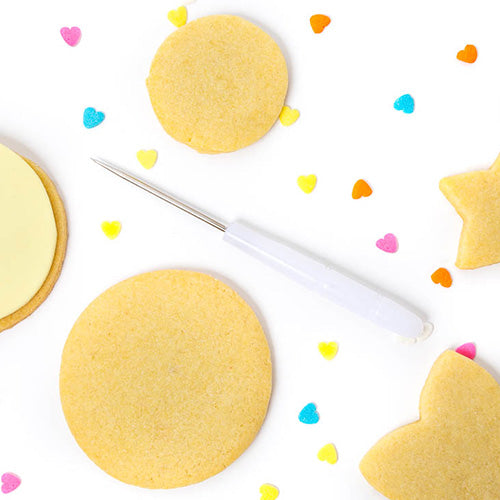 This scribe modelling tool by Coo Kie is great when working with royal icing. It helps remove air bubbles, position sprinkles, and create marbled icing effects to decorated sugar cookies and other creations.