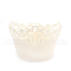 Cross Pearl Ivory Lace Cupcake Wrappers 12pcs