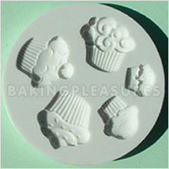 Easily create small little cupcakes using this cupcake sugarcraft silicone mould. There are 5 different designs (3 big 2 small) measuring from 14mm - 25mm at widest point. Sugarcraft Silicone Mould measures 75mm. This sugarcraft silicone mould is made out of a silicone system specially formulated for use in food and confectionary and complies to FDA regulations. This cupcakes sugarcraft silicone mould is ideal for use with flowerpaste, sugarpaste, marzipan and more.