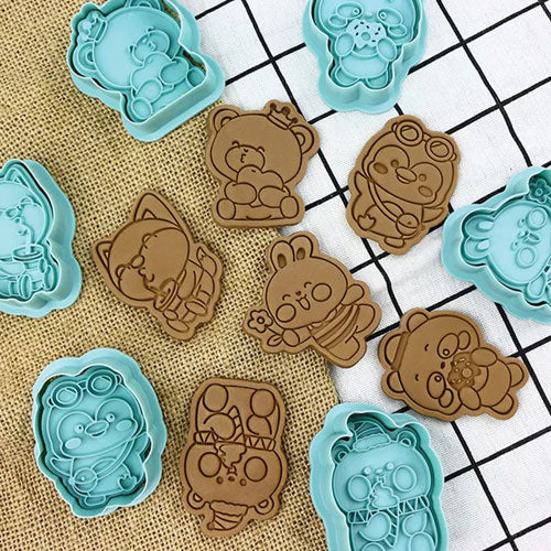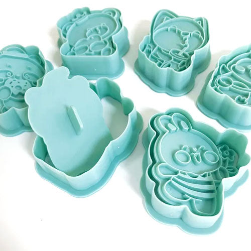 This Cute Animals cookie cutter and embosser set includes 6 Cute Animals themed cutter and stamps. Use these cutters to shape your cookie, then gently press the stamp into the dough to create imprinted detailing. Cutters measures approximately 4cm wide x 5.5cm tall.