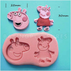 This cute piggy silicone mould inspired by Peppa Pig has 2 cavities which allows you to easily mould a piggy or a piggy face. The piggy face measures approximately 25mm in width and the full piggy measures approximately 30mm in heaight. Works great with Modelling Paste, Gum Paste, Mexican Paste or Moulding Paste.