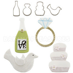 This Cutie Cupcake Wedding Cookie Cutter Set By Autumn Carpenters features 4 wedding themed stainless steel cutters.