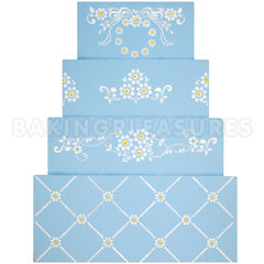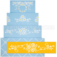 This Daisy Lattice Cake Stencil #3 by Designer Stencils is cut using precision lasers and are made out of heavy duty plastic for high-quality, professional, repeat use. It can be used with airbrush, luster dust, buttercream and royal icing. Measures 2"H x 11"W.