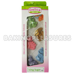 These dinosour shaped cupcake toppers are made out of sugar and are perfect for cupcakes with a dinosour theme. Comes in 6 vibrant colours.