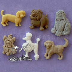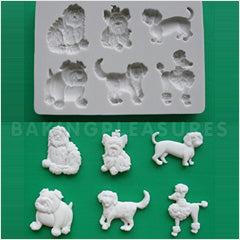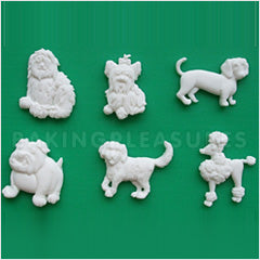 Easily create a wide range of cute dog cake and cupcake decorations using this dog sugarcraft silicone mould 2. This sugarcraft silicone mould has 6 cavities allowing you to create 6 different dog types. This sugarcraft silicone mould is made out of a silicone system specially formulated for use in food and confectionary and complies to FDA regulations. This dogs sugarcraft silicone mould 2 is ideal for use with flowerpaste, sugarpaste, marzipan and more. Sugarcraft Silicone Mould Dimensions: 90mm x 60mm.