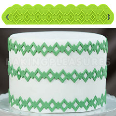 This Double Diamond Silicone Onlay by Marvelous Molds is the perfect tool for creating raised, 3D Double Diamond patterns for cake decorating or any arts & crafts project. Onlays also known as 3D stencil are a great alternatives to stencils as it hold the Double Diamond patterns in its structure so the entire onlay can be lifted vertically and then applied to a surface. Double Diamond Silicone Onlay is made from a flexible, food grade silicone instead of rigid laser-cut plastic. Double Diamond Silicone Onlay measures approximately 15.9cm (6.25") L x 1.9cm (0.75") W.