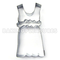 Cut out elegant dress shapes using this 2.75 inches dress shape cookie cutter. Comes with interior cut outs for intricate design. Made out of sturdy tin.