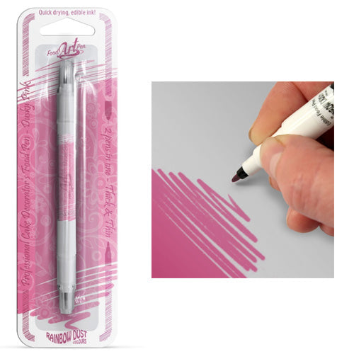 Rainbow Dust Dusky Pink Edible Food Pen is a two sided 100% edible ink pen with one side having an extremely fine tip of 0.5mm great for intricate detail work and a thick tip of 2.5mm for filling in colour. Developed by Rainbow Dust this professional food ink pen is perfect for both amateur and professional decorators. Much easier than using a brush for fine detail work. Suitable on dry, firm & light coloured food surface. The food ink of this edible ink pen is specially formulated and is suitable for vegetarians, kosher and GM free. Ingredients: Water, Glycerine, Humectant, Isopropanol Alcohol, E122, E133