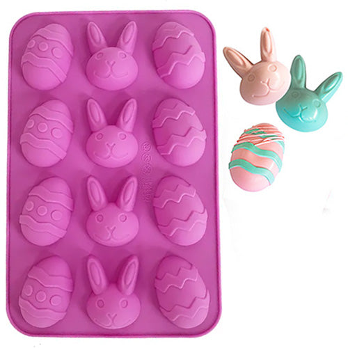 This Easter Bunny & Egg Silicone Chocolate Mould is great for moulding Easter eggs and bunnies out of chocolates, fondant, ice cubes, butter, fudge and more. This mould is made out of food grade silicone and are non stick, flexible, detailed, dishwasher, freezer, microwave and oven safe. There are 12 cavities on this mould.