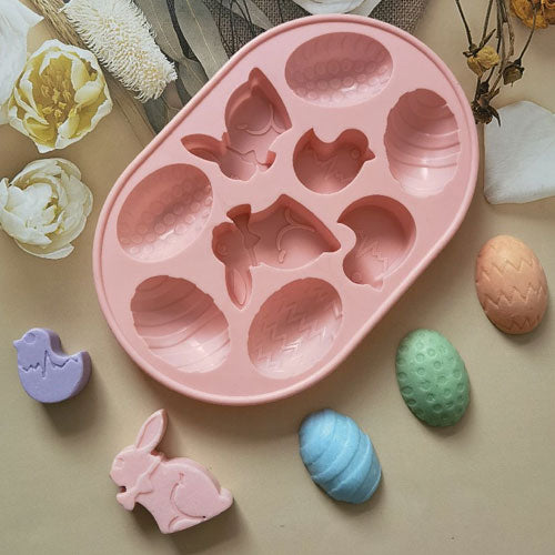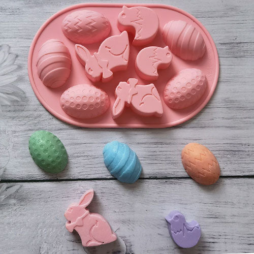 This Easter Chick, Bunny & Egg Silicone Chocolate Mould is great for moulding Easter chick, egg and bunny out of chocolates, fondant, ice cubes, butter, fudge and more. This mould is made out of food grade silicone and are non stick, flexible, detailed, dishwasher, freezer, microwave and oven safe. There are 9 cavities on this mould.