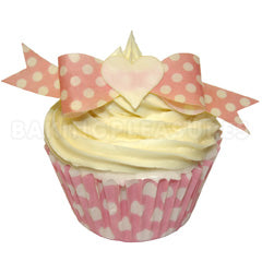 These Edible Baby Pink Polka Dot Bows look like real ribbon but are totally edible. They are made out of high quality sweet vanilla wafer/rice paper (0.7mm thick). The wafer paper is made from the natural ingredients, potato starch, water, palm oil and vanilla flavour and is sweetened with the popular sweetner sucralose (sugar free). It is suitable for vegetarians and vegans. They are so easy to put together and full instructions are enclosed. Great as cupcake & cake decorations. Best of all you can eat them!