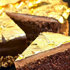 Gold leaf has been used for centuries as decoration for the most lavish table settings and lucullan feasts. Packed in a booklet of 25 gold leaf, each gold leaf measures to the standard European size of 80 x 80mm (3.2" square) and less than 0.000125 mm or .13 microns thin. When consumed these edible gold leaf disintegrates in the mouth without flavour, but beautifully enhances edible delights.