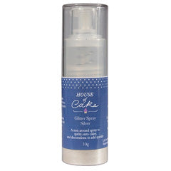 This edible Glitter Dust Spray in metallic silver by House of Cake is a non aerosal spray that gives a subtle metallic silver lustre with glittery particles which catch the light. Comes in a 10g net bottle.