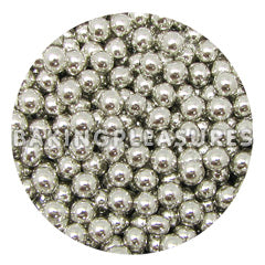 Cute little 4mm Edible Pearl Cachous in bright metallic silver. Great for adding a bit of sparkle to your cakes, cupcakes and desserts. Sold in packets of 80g. Made in Italy. Ingredients: Sugar, Rice and Wheat Starch, Arabic Gum, Wheat Flour, Colouring E174.