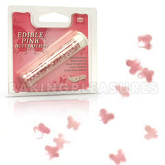 These bright edible butterflies in metallic pink by Rainbow Dust are great for adding a bit of bling to your creations. Simply sprinkle them on your creations or apply them individually using a dampened brush. The pearlescent finish reflects light from each precision cut shape. These edible pink blossom glitter are soluble in water. Comes in a 2g tube. These edible pink butterflies are gluten free, nut free, GM free & lactose free.