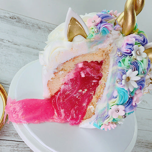 Create fun and unique cakes with this Over The Top Edible Slime in Princess Pink. Great for decorating Halloween theme cakes, cupcakes and desserts. Edible slime is great for simulating water/liquid, lava, slime and more. Fill the middle or cover the top of your cakes and cupcakes with this edible slime.