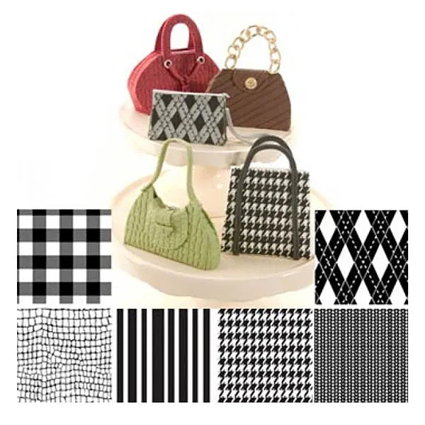 Create beautiful fabric textures on fondant, chocolate, butter cream and more using these fabric texture sheets. This texture set contains 6 beautiful texture sheets with fabric designs. Each texture sheet measures 7 x 10 inches. These texture sheets are made out of lightweight clear plastic. They can be used with fondant, chocolate, buttercream and are very versatile. Suitable to decorate cookies, cupcakes or create accents for cakes.