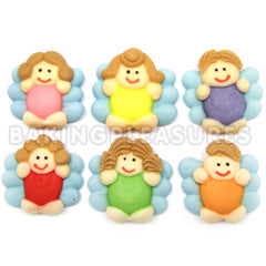 Six cute little fairy & angel cupcake toppers each with its own individual stylish hairstlye. Each pack contains 6 different colours and 4 girl & 2 boy fairy & angel cupcake topper. Each cupcake topper measures approximately 3.5 x 3cm