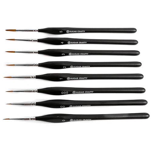 This Fine Sugarcraft Brush Size 0 by Sugar Crafty is a versatile brush that can be used in fine decorating work such as painting cookies, sugarcraft flowers, figurines and more. Made from soft synthetic bristles that are food safe with an ergonomic handle. Available in sizes 000 - 5. The smaller the size number the finer the brush tip.