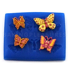 Butterfly Set 2 by First Impressions Moulds. Each cavity measures approximately 1.9cm x 3.1cm x 0.3cm (depth). Measurements on each cavity is given as an average, some cavity measurement may vary slightly depending on its design/pattern. First Impressions Moulds are made out of high quality silicone which is soft and flexible. It can withstand temperatures from as high as approximately 230 degrees celsius to freezing temperature. The First Impressions Moulds Butterfly Set 2 is odourless, is resistant to rips and tears and nothing sticks to them. Suitable for making cupcake topppers as cavities are small. First Impressions Moulds Butterfly Set 2 is suitable for flower paste, royal icing, polymer clays, chocolate, butter, marzipan, bread dough, sugarpaste, ice, cold porcelain, plaster, wax, soap etc. Made in USA. Note: Not to be baked in.