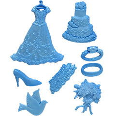 Wedding Mini Set by First Impressions Mould. Each cavity measures approximately 1.2cm x 4.4cm x 0.3cm (depth). Measurements on each cavity is given as an average, some cavity measurement may vary slightly depending on its design/pattern. First Impressions Moulds are made out of high quality silicone which is soft and flexible. It can withstand temperatures from as high as approximately 230 degrees celsius to freezing temperature. The First Impressions Moulds Mini Wedding Set is odourless, is resistant to rips and tears and nothing sticks to them. Suitable for making cupcake topppers as cavities are small. First Impressions Moulds Mini Wedding Set is suitable for flower paste, royal icing, polymer clays, chocolate, butter, marzipan, bread dough, sugarpaste, ice, cold porcelain, plaster, wax, soap etc. Made in USA. Note: Not to be baked in.