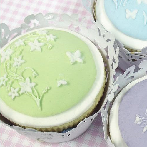 This Floral Meadow Cupcake Mould by Katy Sue Designs features a crisp and detailed floral meadow design. Create a sophisticated look for your cupcakes and it can also be used as decorative plaques on larger cakes. This mould is made in the UK and are made with FDA compliant food grade silicone. Can be used for sugar paste, flower paste, modelling paste, marzipan, chocolate, candy, boiled sugar, cold porcelain, salt dough, air drying clays and embossing powder.